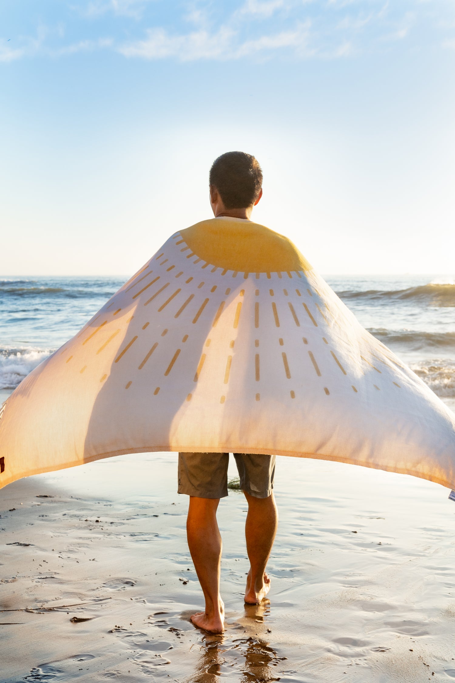 How's that make sense? Our Sand-Resistant Towels' generous size belies just how small it can roll up! These are the perfect towels for your surf session or lazy beach days. A versatile towel, it can also be worn as a coverup, scarf, or hung as tapestry!